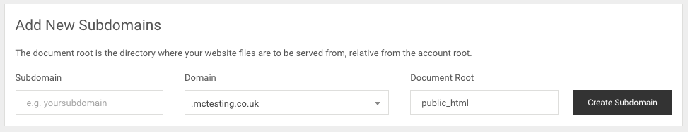 Subdomains allow you to have a new web address for separate areas of your website.