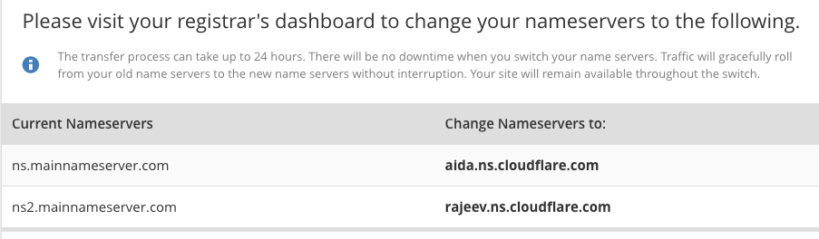 When configured this is all you will need to update and once the changes have fully propagated all traffic for your site will be routed through Cloudflare.