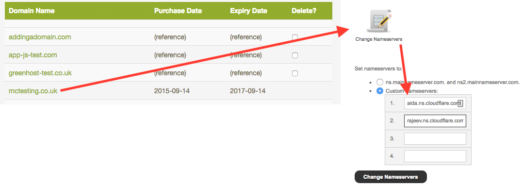** If your domain was registered/transferred from October 2017 onwards (or is a UK domain) then the Change Nameservers icon will now be slightly different but otherwise the process will remain the same. ** If the domain is not registered through Green House Web Hosting then you can make the change to the nameservers through your domain registration service provider.