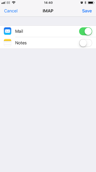 - Mail will prompt you to choose which apps you want to use (Notes/Mail), click save you're ready to go.