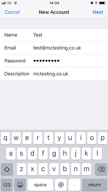 - From the New Account screen you can then enter the mailbox details and click Next: