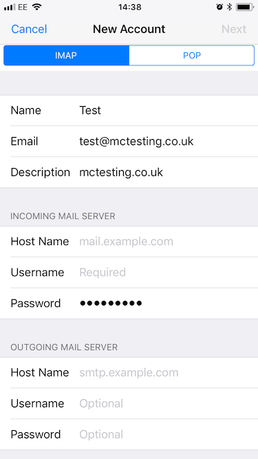 To setup a mailbox using IMAP for your iPhone/iPad please follow the instructions below, the details to use for your mailbox can be found here.