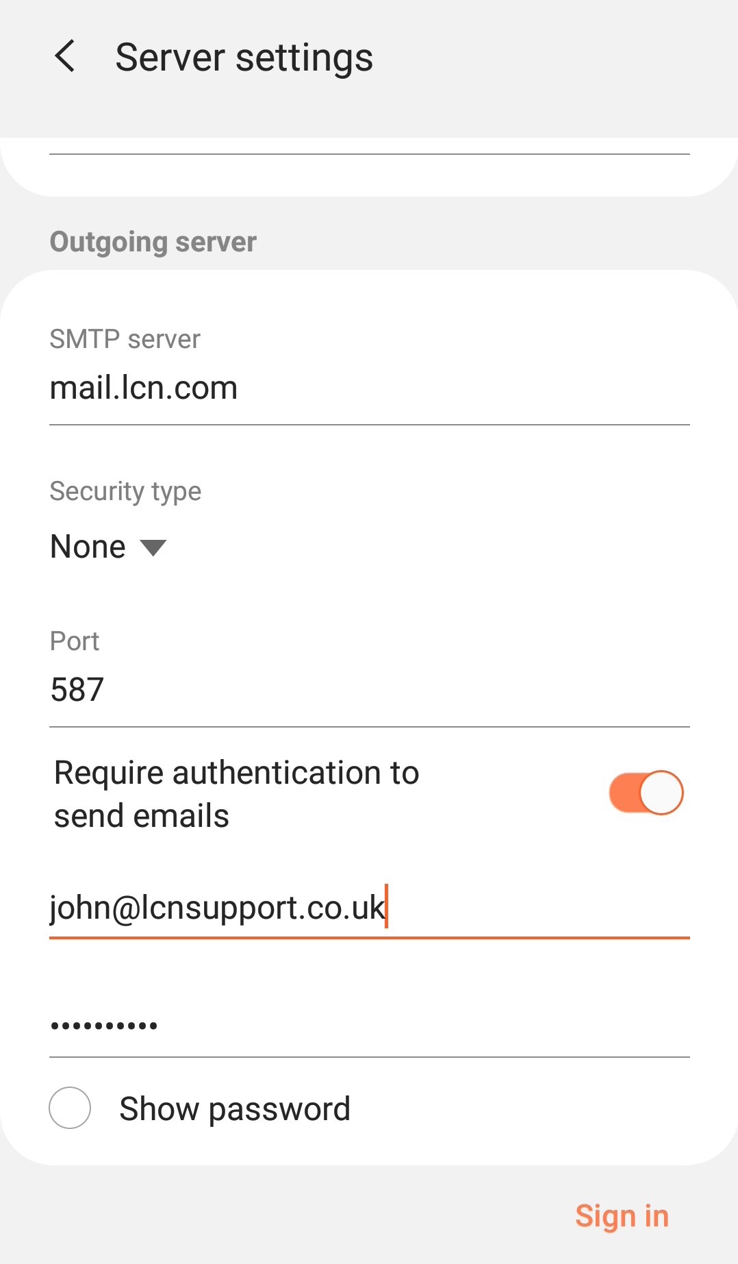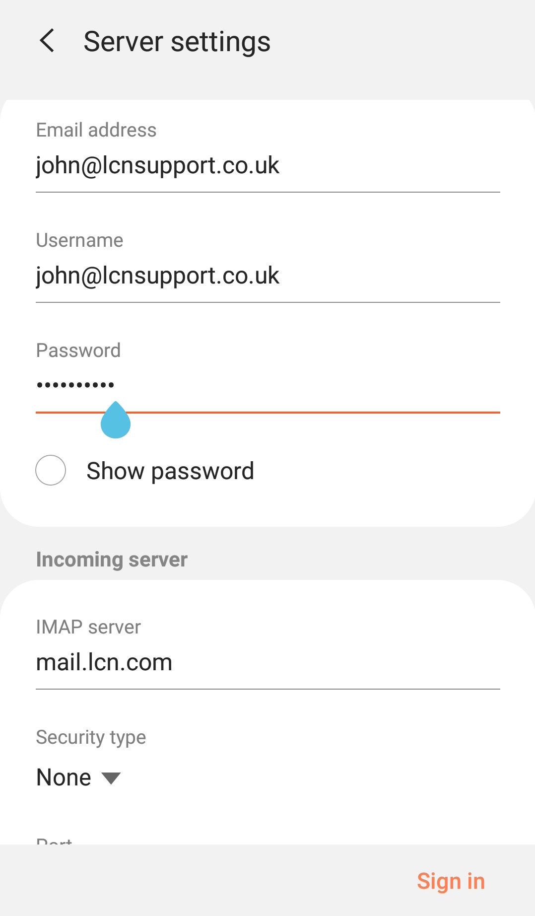 Please Note: It might be helpful to choose Show password to ensure the password is correct if you have this as an option.